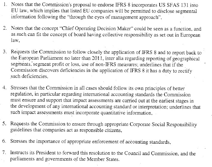 2) not convinced by objectiveness of the review undertaken by the EC on IFRS 8