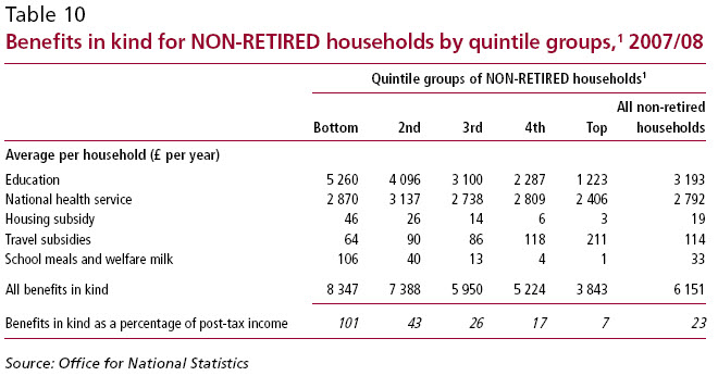 It’s also worth noting just what “benefits in kind” mean, because they form part of income noted, and therefore contribute to income redistribution. This is what they mean for non-retired households: