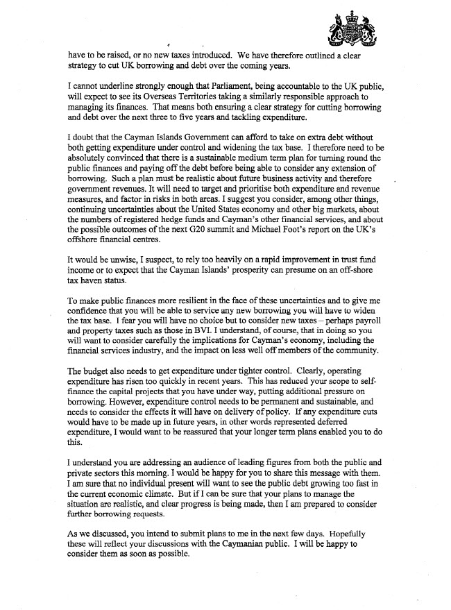 The full text of the UK Foreign and Commonwealth Office letter to the Cayman Islands turning down its loan application is a classic of its type. I can’t rely on Cayman to continue to make it available, so here it is: