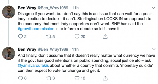 As Ben Wray pointed out above, “a Scottish state would be robbed of the power of money creation” if it adopts sterlingisation. I assume therefore that Ben, like me, believes in MMT.