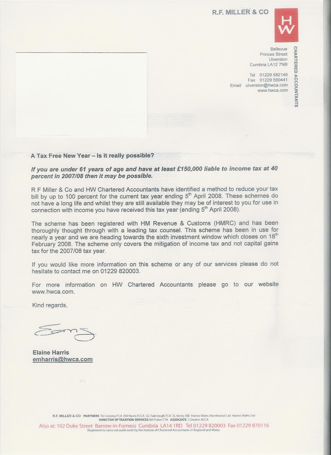 If you don't believe chartered accountants don't sell tax avoidance, here's the evidence that they do, and that they cold call it too.