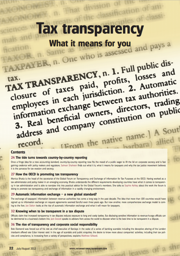 It looks like the latest edition of International Tax Review is going to be worth a read. It includes a special section on tax transparency: