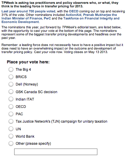 So, you can vote for the Tax Justice Network or the Big 4. What's it going to be?