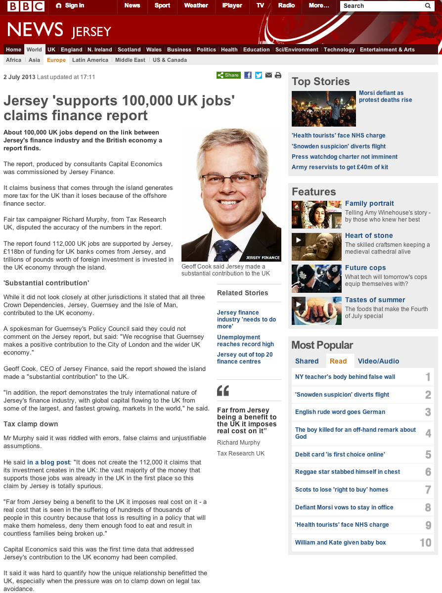 Substantial parts of that report come from what was said on this blog yesterday, meaning that the perception of Jersey's new claims will have been challenged within Jersey itself as a result.