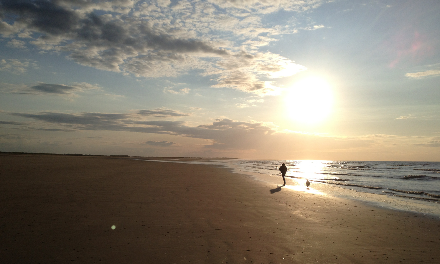 This is my eldest son, our dog and Brancaster beach, north Norfolk, tonight: