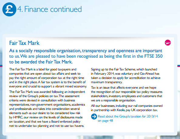 The Groups commitment to the Fair Tax Mark is very welcome.
