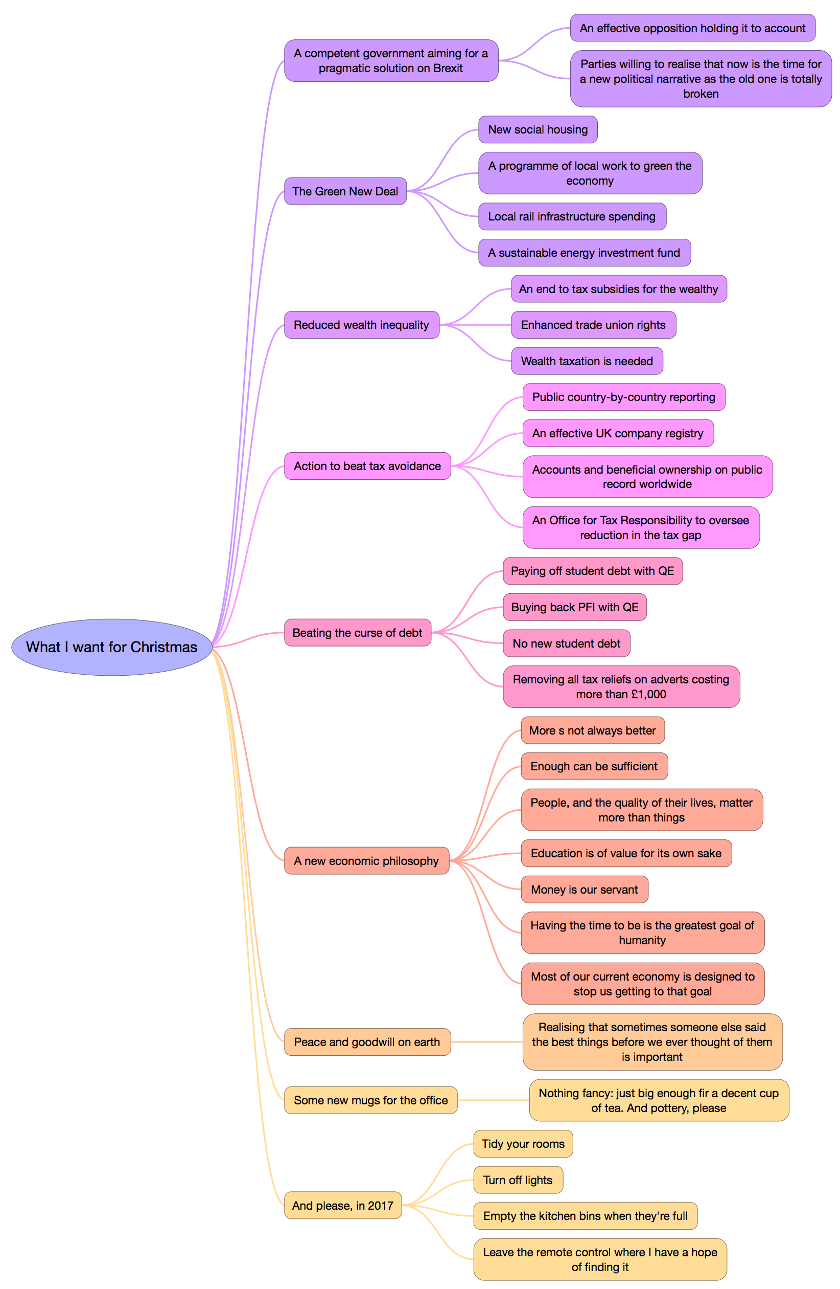 I have teenage sons. As is usual for such beings they have just remembered that Christmas involves giving as well as receiving presents. So they asked what I wanted. This is my Christmas list. I suspect not all are within their gift. The last few might be. But I'm not hopeful. A larger version is here.