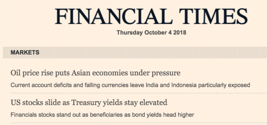 Oil price rises and dollar interest rate rises, simultaneously. That's a recipe for crisis in large parts of the world's economy. If it's not the debt that will tip us over (as the IMF think) something else will.
