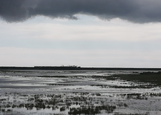 Honestly, that is a colour photo. For the train buffs, it is Lyd heading for Porthmadog across the Cob at about 3pm this afternoon taken from the mainline train about a mile further north. Any fuzziness is down the quality of window cleaning by Trains for Wales.