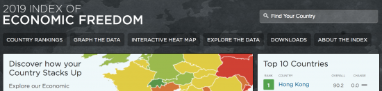 According to the US-based Heritage Foundation Hong Kong leads the world on economic freedom: