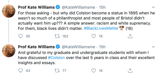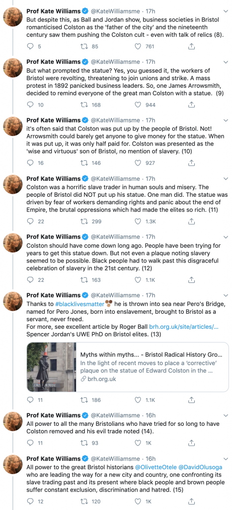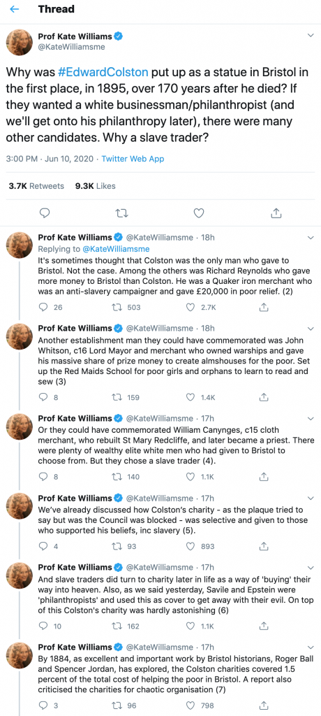 Roger, where do you think the idea to ditch Colston in the harbour came from? The professor has been discussing Colston with her students for 5 years.