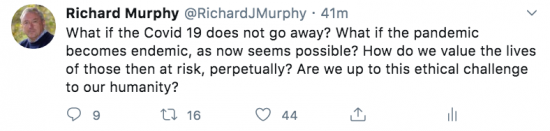 The consequences of what I see as establishment insouciance are potentially too appalling to consider – like out of some dystopian sci-fi novel or whatever.