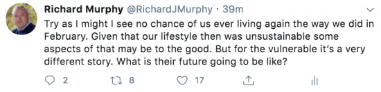 I hope that it has clicked in the heads of our population who are too easily swayed by populism that the economy comes first and not people. And not just ‘the economy’ – the work and spending and services (etc.,) that takes place but also economy in the sense that politicians are too economical with the truth and the money at their disposal to do anything to really help us who put them there!