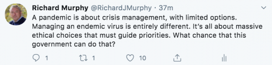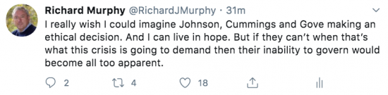 Glad you are frustrated too. I’ve heard Paul Mason similarly suggest its good politics. I’m not convinced. I think unless to start to present another vision, offer a different set of values, and stop praising with faint damns, you will allow the Tory narrative to become engrained. Look what happened when Labour failed to push back on the idea in 2010 that Labour had tanked the economy. It found itself embracing austerity.