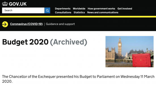 To support some work I have been doing I wanted to check some data from the March 2020 budget. So I did a search for it, and found it's already been archived: