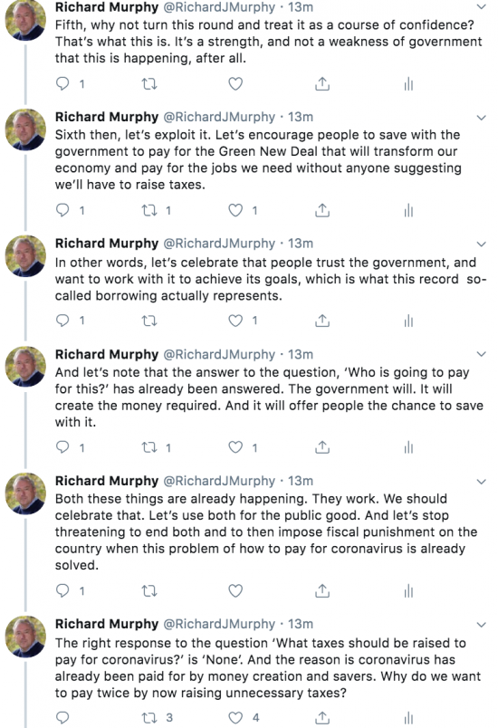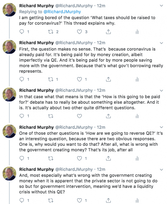 I have always been told not to answer questions people are not asking. Your tweets are entirely sensible given what you know about MMT and economics generally. But they don’t perhaps answer what is in the public view. People do want to know about tax and feel that these things have to be paid for – regardless of what actually happens.