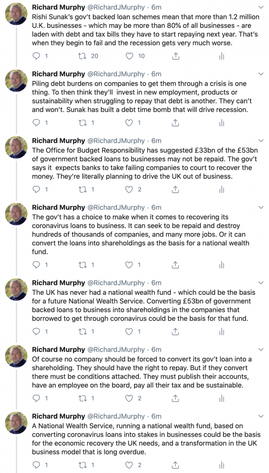 I seem to remember in what now seems like the dark distant days of March and April that you were warning about the Government’s schemes to “save” business as being inadequate, the wrong kind of help when cash flow was the imperative and that disaster would follow in due course.