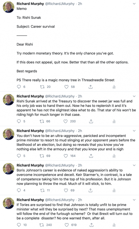 UK history now on its way to being re-run namely Churchill as Chancellor returning Britain back to the Gold Standard at the pre-war rate a decision he subsequently realised was the greatest mistake of his life. Again the Treasury pressured him into it but also the governor of the Bank of England and the Labour Party wanted it too! This time it’s not the Gold Standard but balancing the government’s books as though it was still on the Gold Standard and failing to understand trade deals have to be mutually acceptable and therefore there’s no such magic ingredient involved as British Exceptionalism (Britannia rules the waves) anymore!