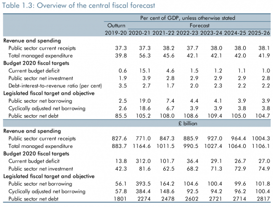 Sunak will, of course, prefer to highlight that this forecast suggests that debt as a proportion of GDP falls by the end of the period. But, as I have already noted, the assumptions that underpin this are that business and consumers spend, spend, spend from 2022 onwards and there is simply no evidence based on past economic recoveries, where caution persists for a long time after recovery begins, to suggest that this is likely. If the behaviour is more normal, as I strongly suspect it will be, then borrowing will be approximately double that which Sunak is forecasting - and will be roughly £200bn a year, and debt will most certainly rise significantly, as measured in this way.