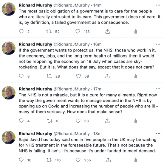 With Javid at health that is entirely possible. As Ian Dunt has put it, ‘moral delinquents’. I’m usually inclined to think cock-up before conspiracy but with this lot it tends to be both. Conspiracies that involve a lot of cock-ups.