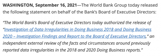 I admit I see things slightly differently. I am delighted by the demise of the Doing Business report. It has always promoted a profoundly inappropriate view of the world concentrating as it did on light regulation and low tax as the basis for prosperity when quite clearly what was not true. This report was part of the old Washington Consensus which the world can most definitely do without.