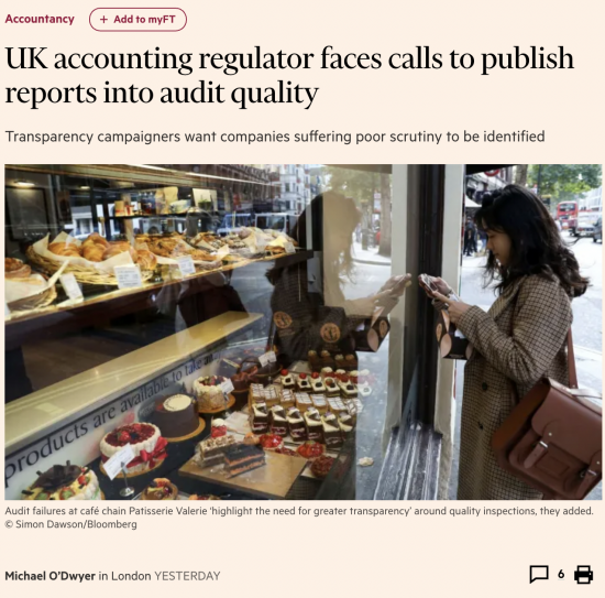 We believe that the audit failures at Patisserie Holdings highlight the need for greater transparency of AQRs. We understand that the FRC reviewed the company's audit as part of the 2018/19 AQR. However, there are no detailed disclosures about the findings of that specific review, including whether or not the FRC identified any issues with Grant Thornton's audit which was subsequently revealed to contain “numerous breaches of relevant requirements [...], evidencing a serious lack of competence.”