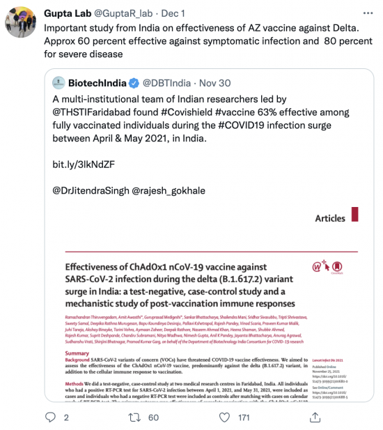 To fuel my concern I note this Tweet from the highly respected Prof Ravi Gupta yesterday:
