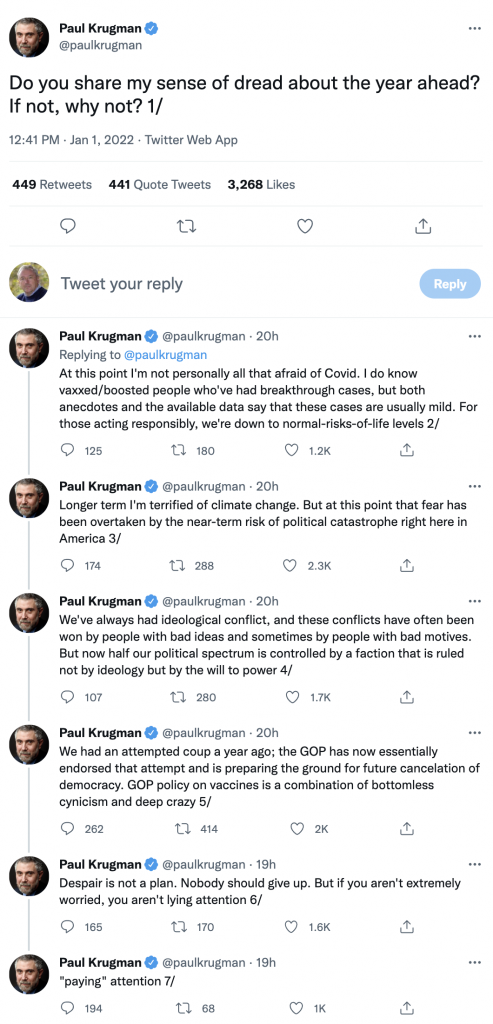 I don't by any means always agree with Paul Krugman, but that does not mean he cannot be right. Excepting his understatement of the risk from long Covid in here he has the rest spot on: