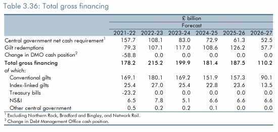 What this means is, broadly speaking (and all the figures are estimates, so broadly speaking is good enough) that in 2022/23 the financial markets will have to fund £100 billion of gilt purchases and at the same time the Bank of England will withdraw over £35 million from that market. That means there will be a cash call on U.K. financial markets of around £140 billion when over the last two years there has been none, in effect.