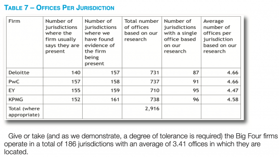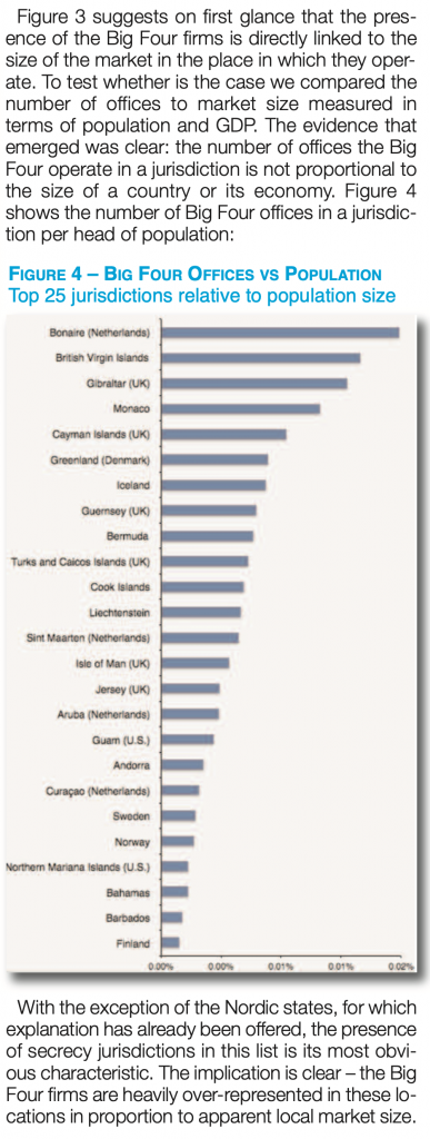 Between 20 and 25% of all locations that the Big 4 serve are tax havens. And they are not there to service local needs. Our work tested this in two ways: