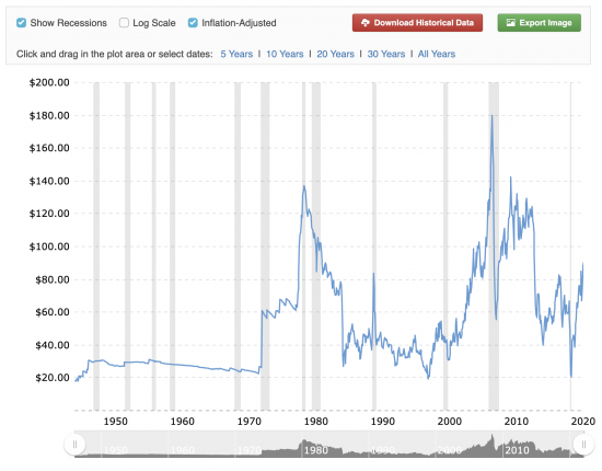 This chart of oil prices is also indication of that. Note it is inflation adjusted: