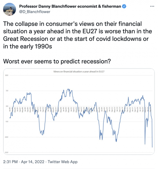This tweet is from my friend and fellow Mile End Road economist Danny Blanchflower: