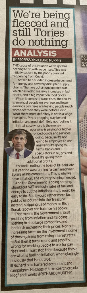 Yup. The tories vastly prefer that the burden of tax comes thru ‘indirect taxation’, falling more heavily on Joe and Jane Public. That’s why they have not and will not address the excessive tax they’re pulling in from fuel and power. It’s also why they will not address the billing ‘structure’ of the major utilities – they prefer flat taxes and these are structured to be just that.