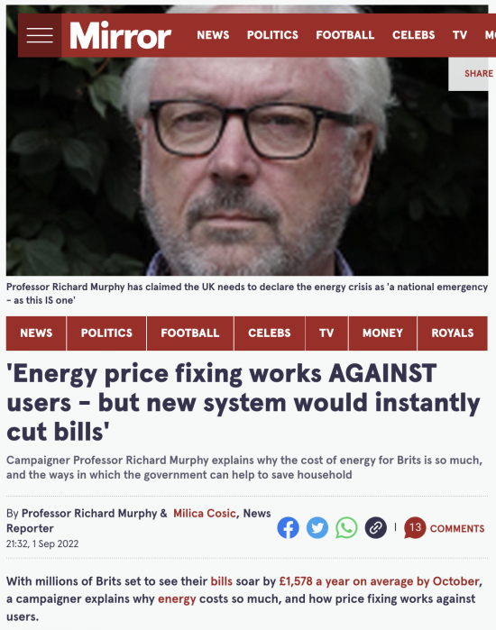 The article is based on the Twitter thread on energy pricing that was posted here on this blog. The Mirror said to me that it's the best idea to solve this crisis that they've seen as yet. There were strong hints yesterday that the EU is looking at measures like this. let's hope so.