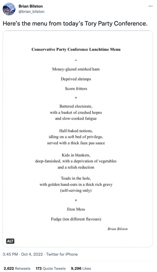 The Tory menu