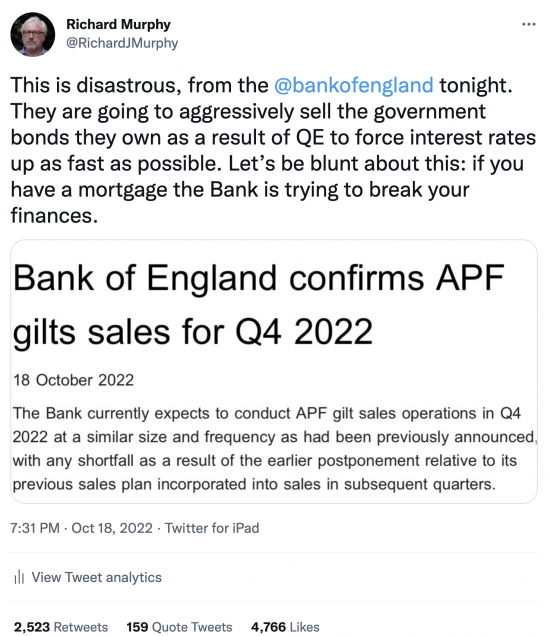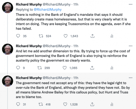 […] For instance, Richard Murphy has repeatedly called for its Governor, Andrew Bailey, to be dismissed, which the Government could do at any time. Some detail from an October 19 post: […]