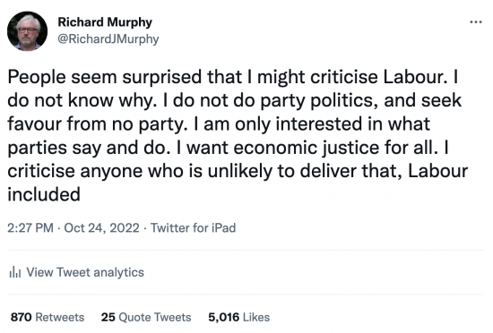 The point is more important though. I will not do party politics with its implicit requirement that I follow a leader come what may, even if I am quite sure that the party leadership in question is wrong. The whole point of this blog and my other work is to speak truth to power, in the process seeking economic justice for those who are currently denied it.