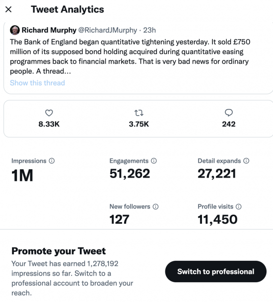 Yesterday's thread on quantitative tightening was a case in point. I thought this technical, and so unlikely to be read much, but worth writing nonetheless.