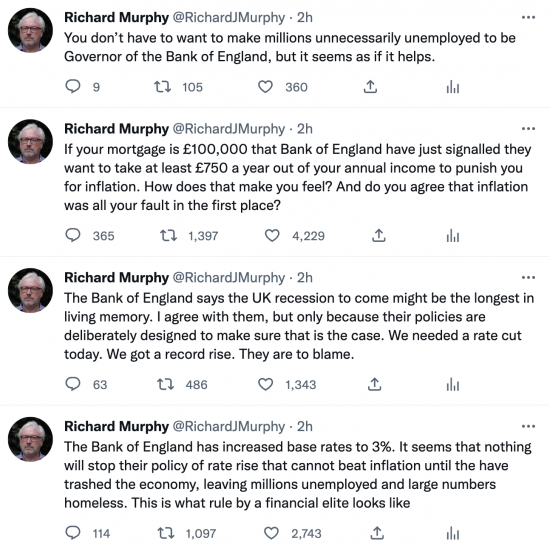 I am one of the plebs at the bottom of the hierarchy who didn’t understand how the government operates (my bad, was busy trying to cope domestically & only watched BBC news, don’t buy newspapers) but thanks to reading your tweets & blogs (some others too) I now know what is happening, thank you for explaining it in terms I can comprehend. My question is, why? What is the end game of the tories, the BoE & the super rich? Other than getting richer obviously! When all us plebs are dead or dying what will the rich have that they don’t have already?
