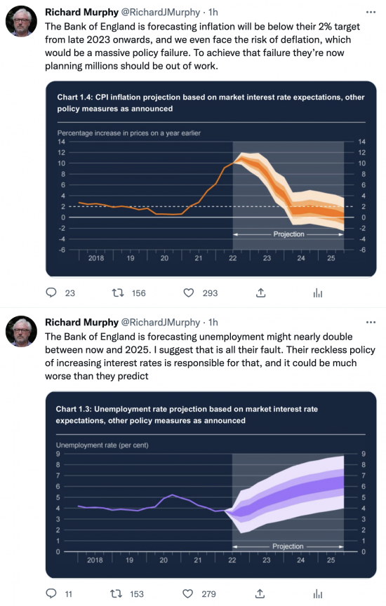 Richard your last graph showing BoE project inflation rates to ease by mid next year, I assume that takes into account their recent hike in interest rates as well as any further increases in future. What would the graph look like without such interest rises is the question.