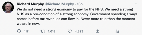All f these things are obvious. It is as obvious in that case that spending on health is the necessary precursor of economic recovery and not something we can only afford when it has happened.