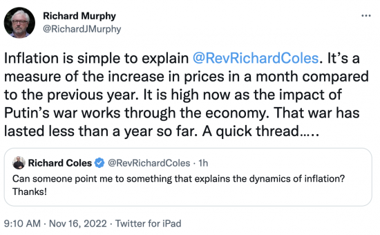 A quick thread on inflation this morning, in reply to a tweet from the Rev Richard Coles: