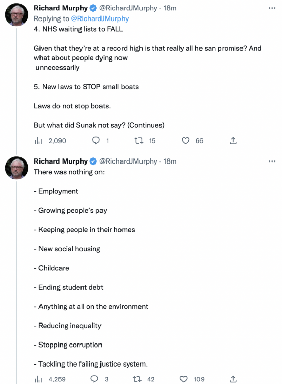I just posted these comments on Twitter having watched Sunak speak to the nation on his 'vision':