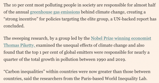 The message is simple: if we are to save the planet we have to tax the rich because they massively over-consume. It's as simple as that.