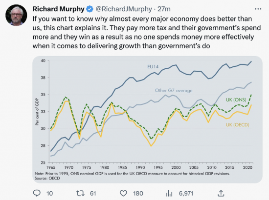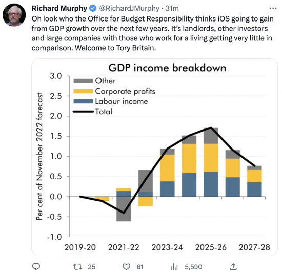1. The three year 100% capital allowances (“full expensing”) gives away about £10 billion per year of the £15 billion or so that was estimated to be raised by increasing corporation tax from 19% to 25%. Given corporation tax brings in around £70 billion each year, that is a fair chunk of the whole.