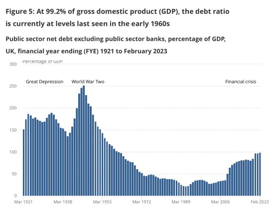 Let's ignore the fact that they include more than £800 billion of debt owed by the government to itself in the debt figure, making any claim that the ONS might make as to credibility laughable.