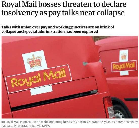 Staggering, isn't it, that something considered a universal public necessity for more than 180 years is now reduced to the risk of insolvency by being privatised.