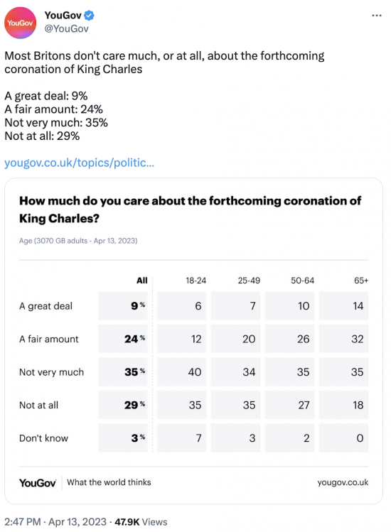 It’s what I did on the last Royal Wedding…..and look how that’s turned out for the monarchy. Encouraging to see then that nearly 2/3 of the populace aren’t really interested. Maybe they have got better things to think about like a steadily worsening NHS, inflation, climate change, rivers and seas full of shit.