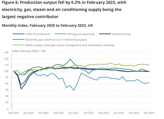All production output is falling (which good, but unplanned, news for the green agenda) excepting sewage, where the amount being charged for what might politely be called doing a shit job is going up.