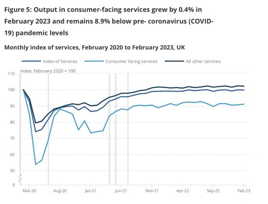 Non-consumer facing services are up. Those that people actually went are still heavily down. Retail and brewing are doing OK. Travel, holidays, car and motor cycle sales are not. In other words, people are seeking short term solace for bigger woes.